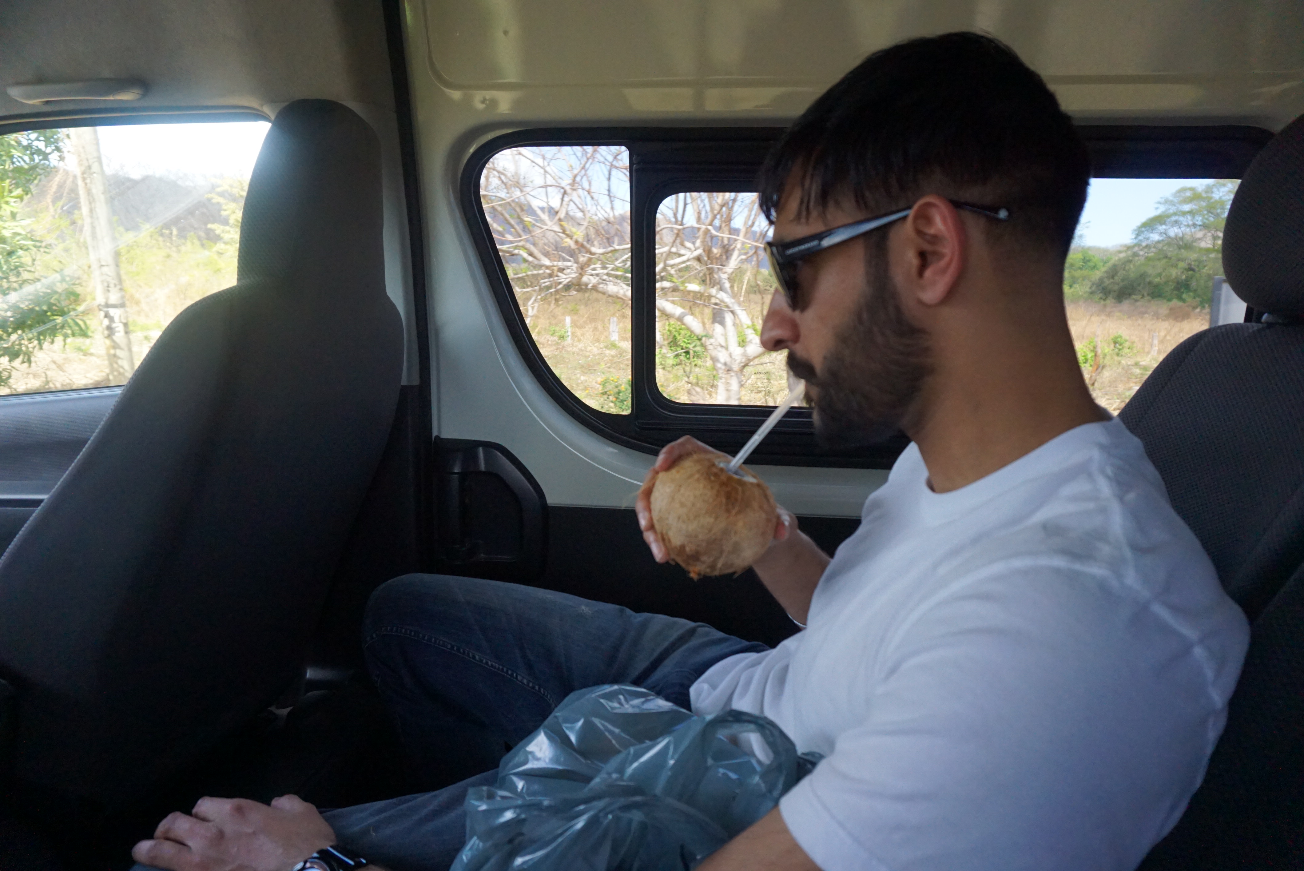 Harsh enjoying a fresh coconut